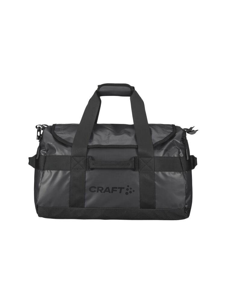 Craft ADV Entity Duffel 50 L -laukku kierrätetyistä materiaaleista. Vedenpitävät vetoketjut, kaksi suurta sivutaskua, piilotettavat säädettävät olkahihnat. D-muotoinen aukko sääsuojalla.