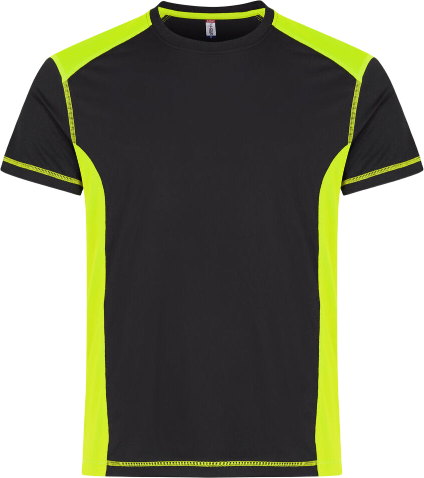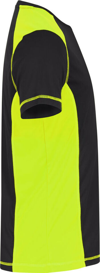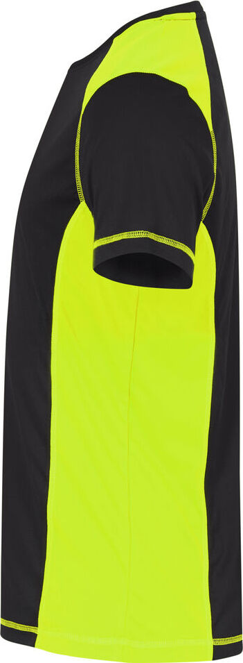 Kontrasti T-paita lisää näkyvyyttä! Paita on osittain valmistettu kierrätetystä polyesterista. Kontrastiompeleet ja kaulus joustinneuleesta. Vahvistettu niskanauha ja helposti irrotettava niskalappu, joten se voidaan tarvittaessa vaihtaa.