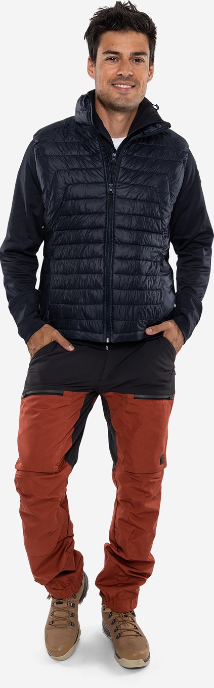 Kestävät retkeilyhousut stretch-paneeleilla. Valmistettu kierrätetystä ja orgaanisesta materiaalista. Käsitelty ekokestävällä DWR-käsittelyllä. Täysin varustellut housut: neljä taskua, sivutuuletusaukot, polvitaskut ja heijastavat yksityiskohdat parantavat näkyvyyttä. Yhdistä polvipehmusteiden 132711 kanssa parantaaksesi polvisuojausta. PFAS vapaa