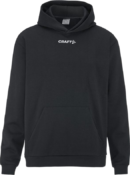 Craft Community 2.0 Logo Hoodie -huppari miehille. Rento ja urheilullinen huppari kentän ulkopuolelle. Pehmeä kierrätyspolyesterin ja luomupuuvillan sekoitus, harjattu sisäpinta. Kengurutasku edessä, kontrasti-logo.