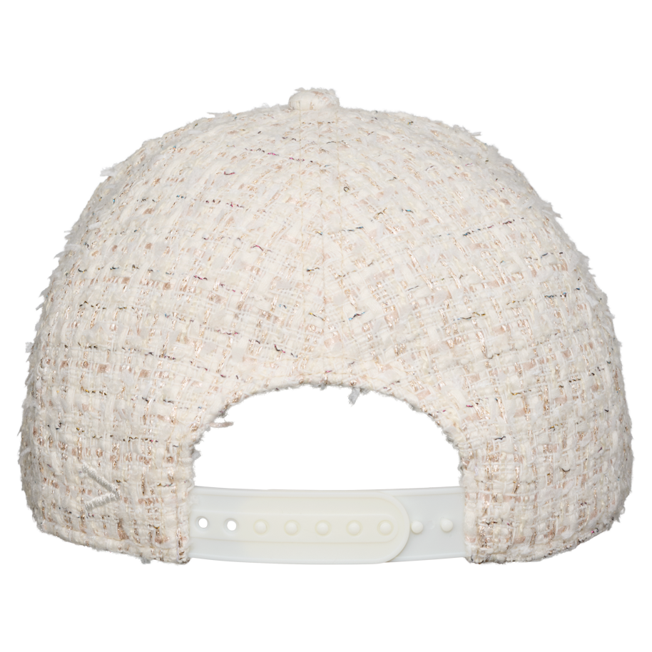 Klassinen baseball-malli on saanut uutta ilmettä tyylikkäästä buklee-henkisestä kudotusta pinnasta. Rouheassa tekstuurissa on mukana metallin hohtoa.