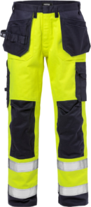 Huomiovaatesertifioidut palosuojatut housut kestävästä ja miellyttävästä palosuojakäsitellystä materiaalista. Rakentajan malli jossa tumma väritys likaantumiselle alttiissa kohdissa ja palosuojatusta CORDURA®-materiaalista valmistetut polvitaskut. Testattu 50 pesukierrosta teollisessa pesussa. Siirtymässä PFAS-vapaaksi