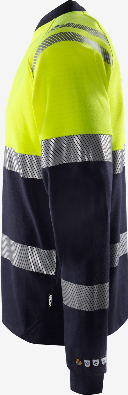 Palosuojattu näkyvä T-paita korkealla valokaarisuojauksella. Pehmeä t-paita itsessään paloturvallisesta materiaalista, hyväksytty teolliseen pesuun. PFAS-vapaa.