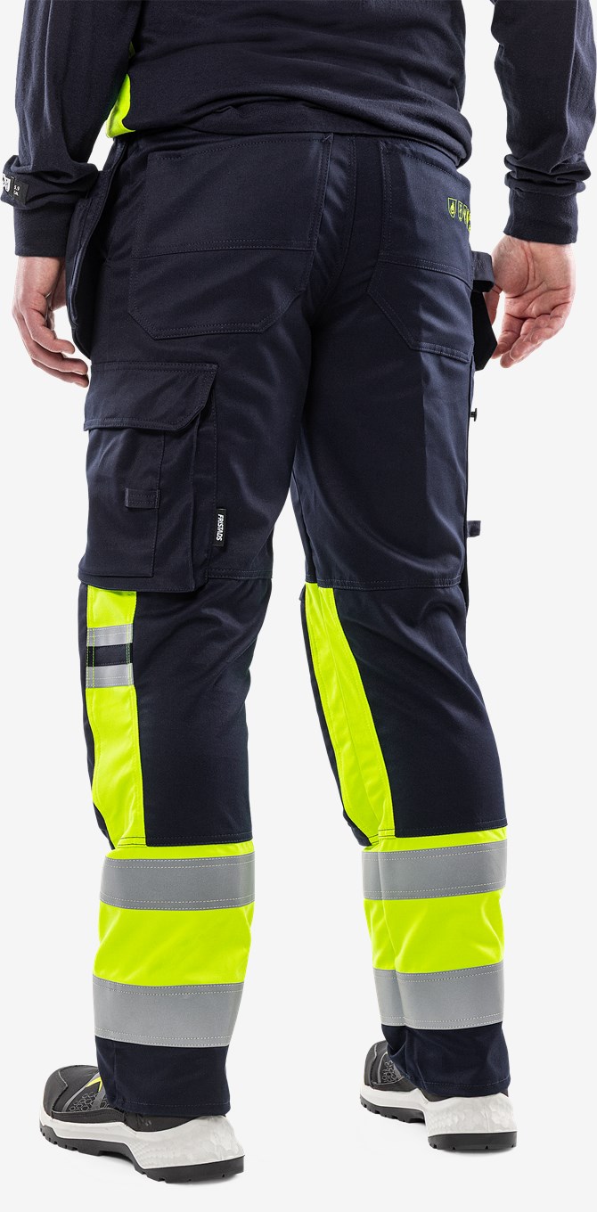 Multinorm rakentajan housut kevyestä ja kestävästä stretch materiaalista, jossa on inherent palosuojaus. Erityisen pehmeät ja mukavat näkyvät housut jotka tarjoavat erinomaisen liikkumisvapauden ja korkean suojaustason. Varustettu kahdella taittomittataskulla, yksi molemmilla puolilla. Hyväksytty teolliseen pesuun. Siirtymässä PFAS-vapaaksi