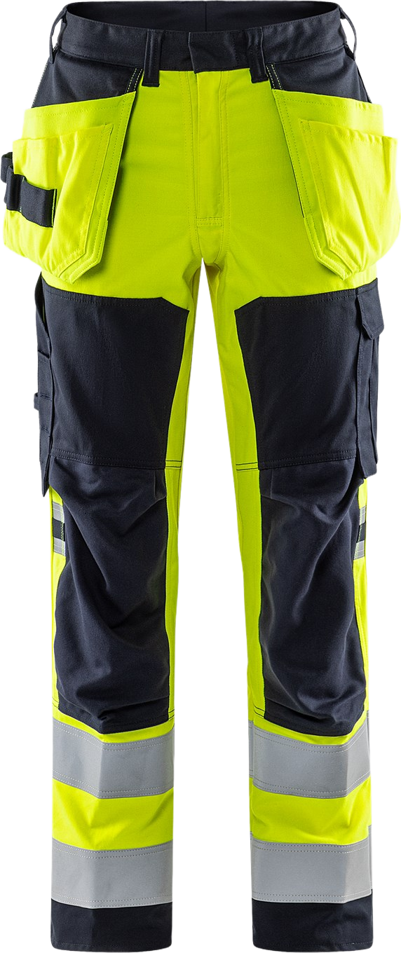 Multinorm rakentajan stretch housut kevyestä ja kestävästä materiaalista, jossa on inherent palosuojaus. Erityisen pehmeät ja mukavat palosuojatut näkyvät housut, jotka tarjoavat erinomaisen liikkumisvapauden ja korkean suojaustason. Varustettu kahdella taittomittataskulla, yksi kummallakin puolella. Hyväksytty teolliseen pesuun. Siirtymässä PFAS-vapaaksi