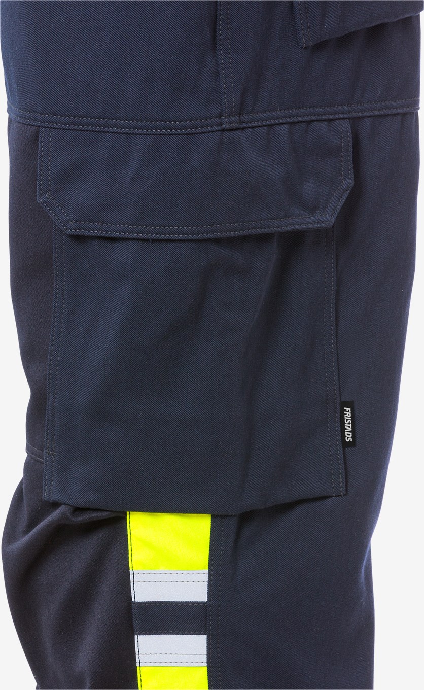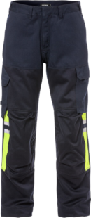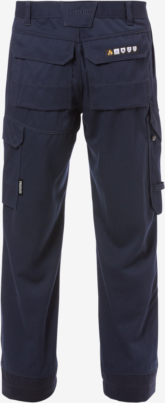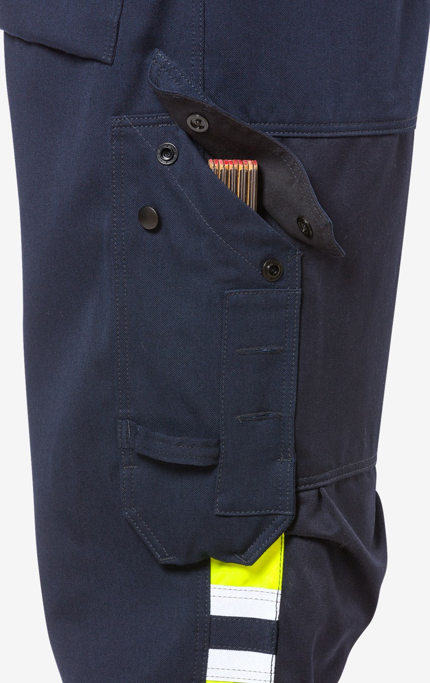 Itsessään paloturvallisesta materiaalista valmistetut palosuojatut housut sulan raudan ja alumiinin käsittelyyn. Vahvikkeet alttiissa kohdissa edessä parantavat suojausta sulan metallin roiskeita ja kipinöitä vastaan. Ei metalliosia. PFAS vapaa