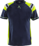 Palosuojattu t-paita neonkeltaisilla paneeleilla ja heijastavilla yksityiskohdilla. Valmistettu pehmeästä materiaalista, jossa inherent palosuojaus ja joka on hyväksytty teolliseen pesuun. PFAS vapaa