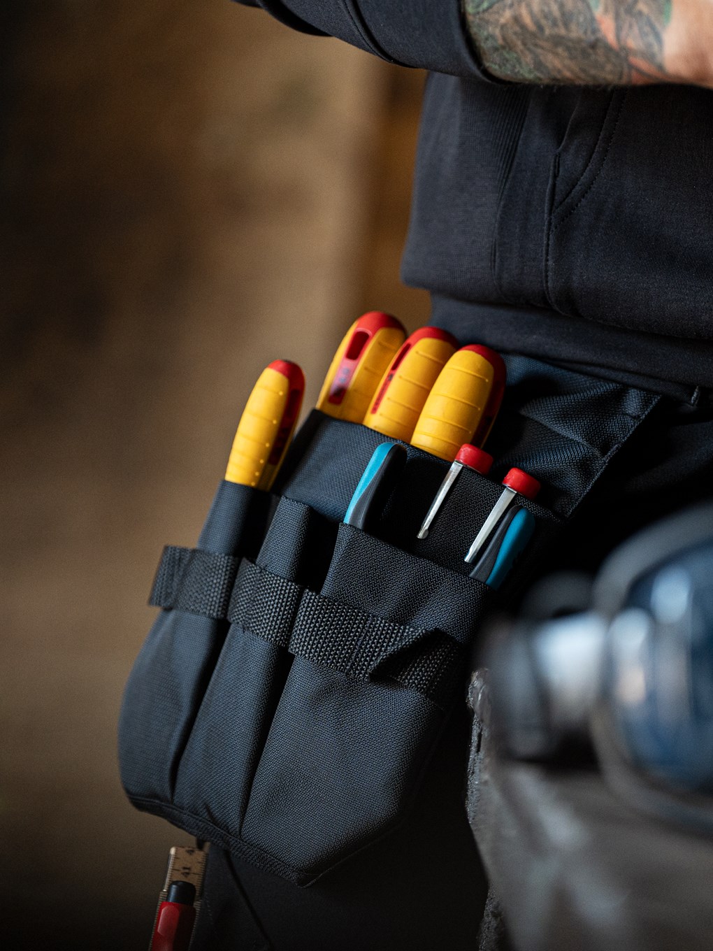 Riipputasku, joka on osa Fristads Flex -tuotteita, erityisesti suunniteltu sähköasentajille. Kiinnittämällä riipputasku valikoituihin rakentajan housuihin magneettinapeilla, housuja voi varioida haluamallaan tavalla. Valmistettu kaksinkertaisesta 100% CORDURA® -materiaalista, joka tuo lisävakautta ja kestävyyttä. Tasku sopii sekä housujen oikealle että vasemmalle puolelle ja siinä on käytännöllinen ripustuslenkki takana. Yhdistä Flex-rakentajan housut 300586, 301506, 301459. Konsepti: Tyresta PFAS vapaa