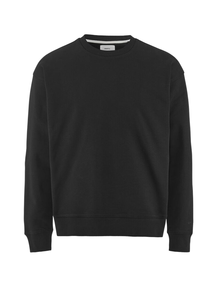 Craft Frequent RN Sweatshirt -college miehille 100% luomupuuvillasta. Paksu ja laadukas 380g/m² loopback-kangas, pehmeä ja lämmin. Pyöreä pääntie, joustoresorit. Rento istuvuus arkikäyttöön.