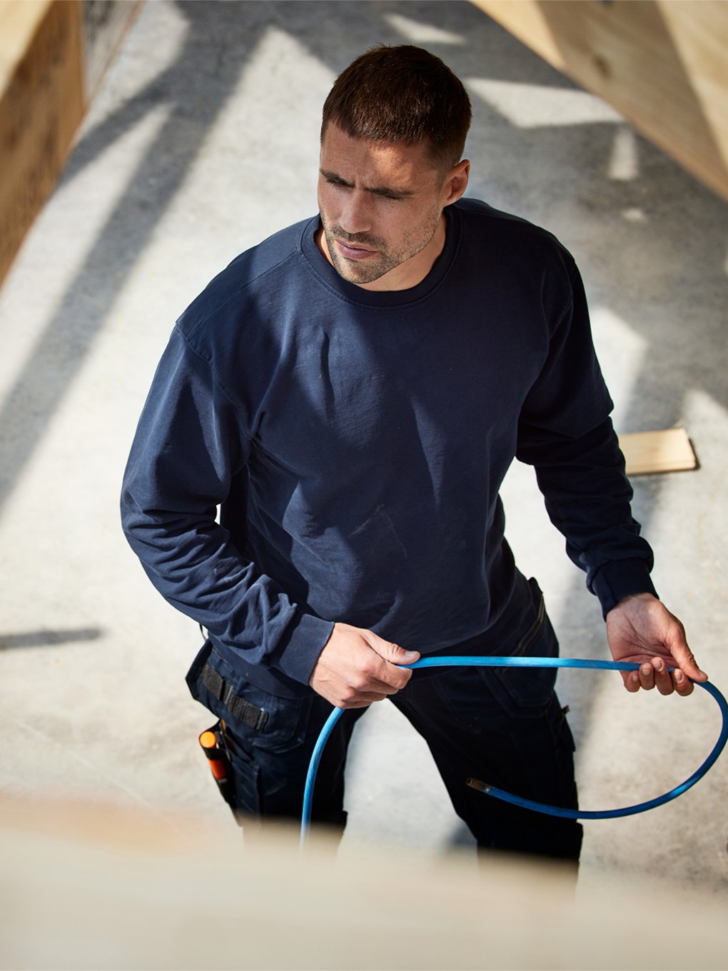 Klassinen collegepaita pyöreällä pääntiellä luomupuuvillasta. Tuotteella on EPD-ympäristöseloste ja se on PFAS-vapaa. Konsepti: Alnaryd PFAS vapaa