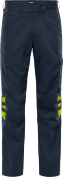Housut kevyestä ja kestävästä materiaalista, joka on osittain kierrätettyä polyesteria. Mukavat työhousut mekaanisesti joustavasta materiaalista, vyötäröllä joustava ribbineulos. Hyväksytty teolliseen pesuun. Tuotteella on EPD-ympäristöseloste. Konsepti: Forsbo PFAS vapaa