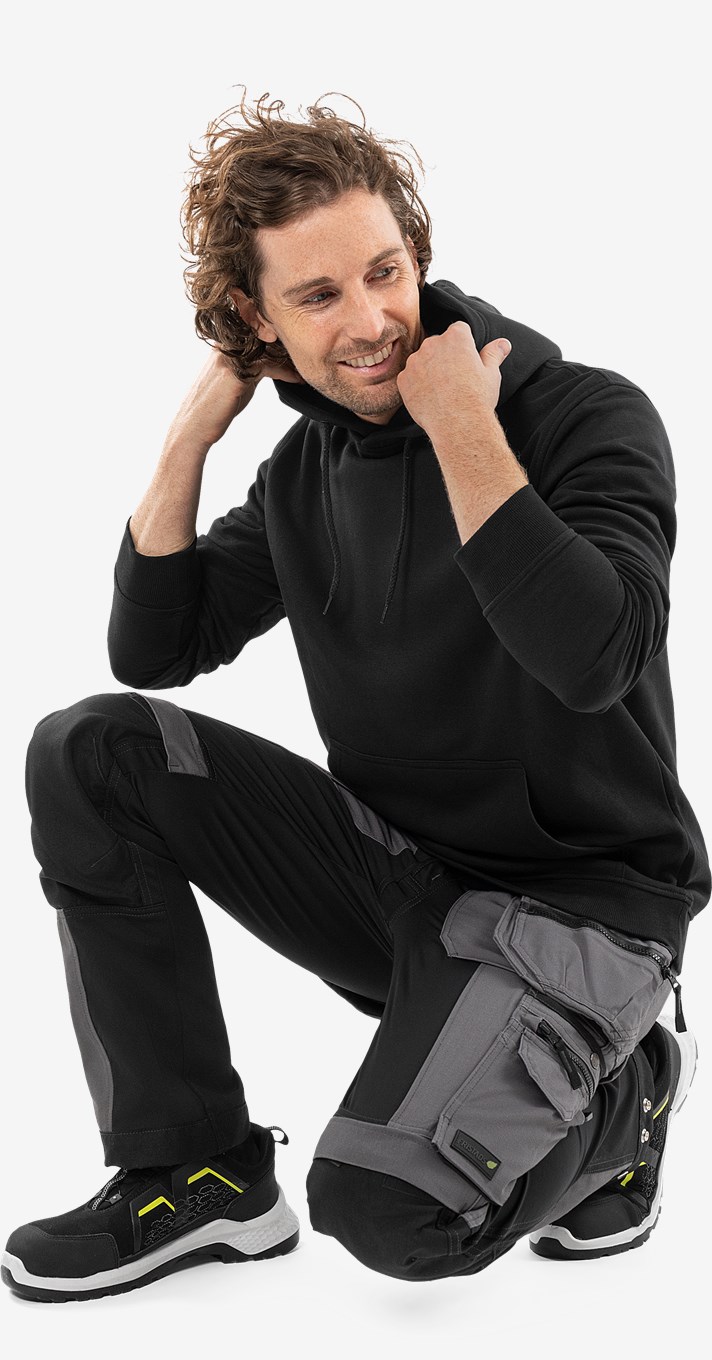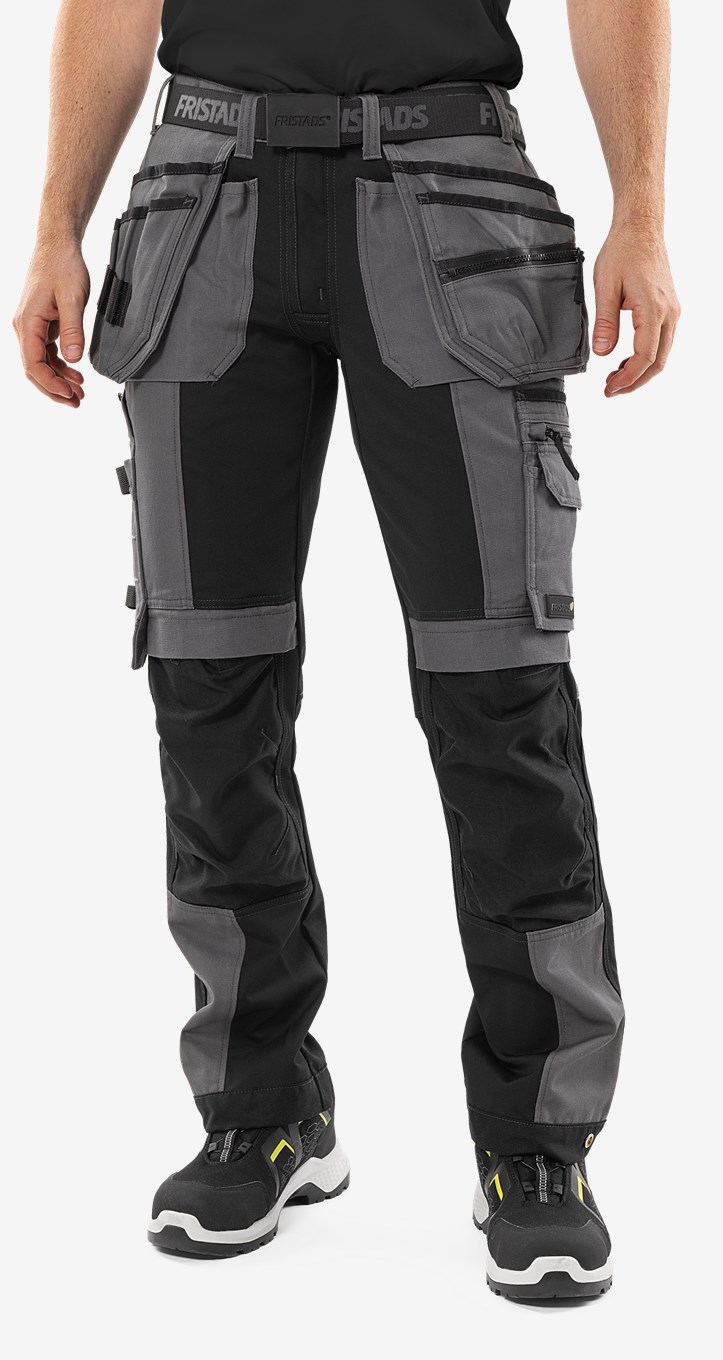 Rakentajan housut liikkuvuuden optimoivilla 4 suuntaan joustavilla suurilla stretch-paneeleilla. Kestävät käyttömukavasta puuvillasta ja kierrätetystä polyesterista valmistetut työhousut toiminnallisilla taskuratkaisuilla, CORDURA® -vahvikkeilla ja vedenpitävällä vetoketjutaskulla. Tuotteella on EPD-ympäristöseloste (Environmental Product Declaration). Konsepti: Alnaryd PFAS vapaa