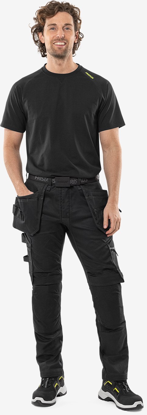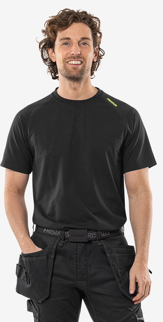 Vahva ja joustava T-paita kierrätetystä polyesterista ja puuvillasta. Tukeva neljään suuntaan joustava materiaali tarjoaa erinomaisen mukavuuden, kestävyyden ja siistin viimeistelyn. PFAS vapaa