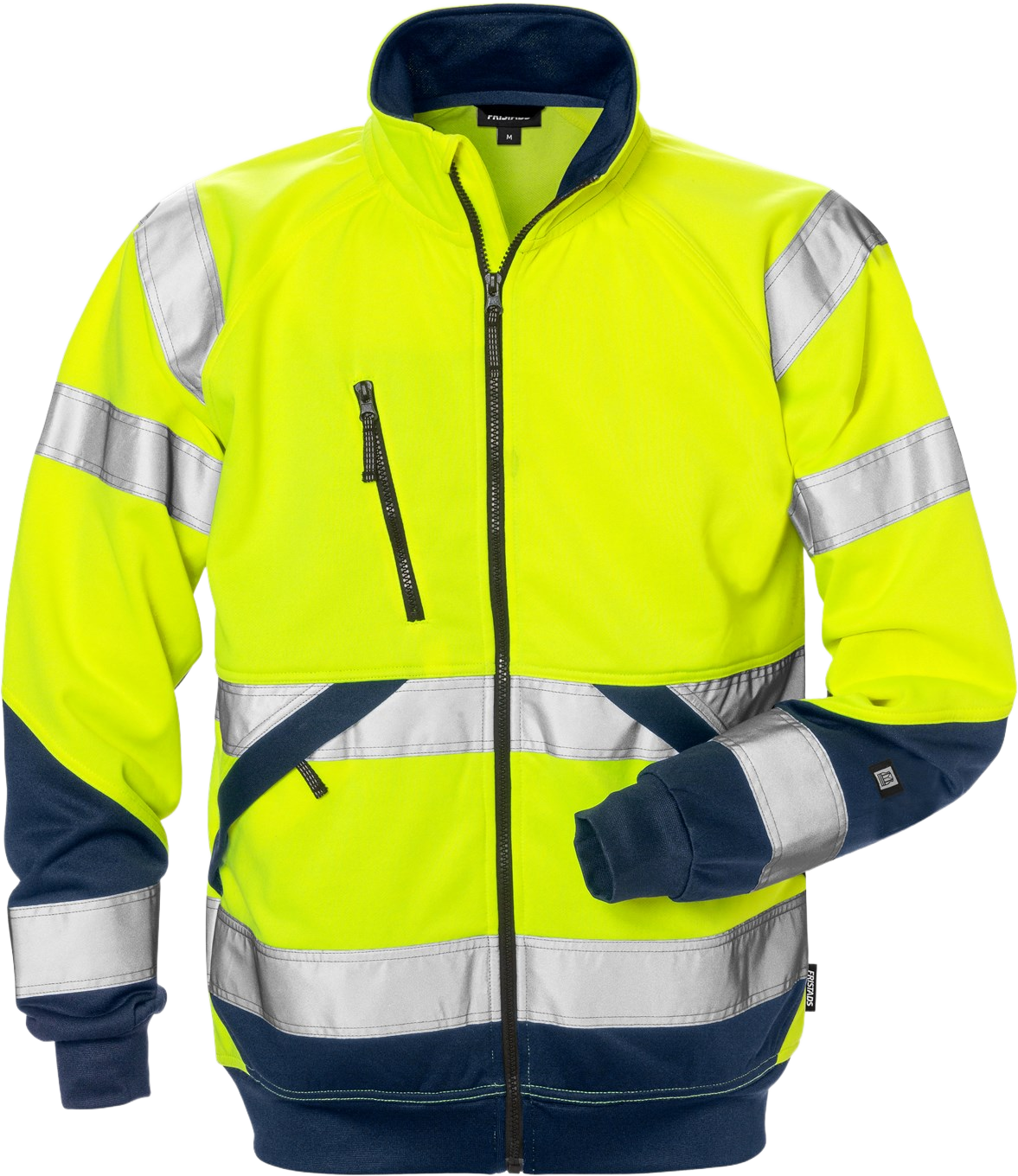 Näkyvä collegetakki mukavalla ja pehmeällä puuvillaisella sisäpuolella. Tumma väri alueilla, jotka likaantuvat nopeimmin, vetoketjulliset etutaskut. Hyväksytty teolliseen pesuun. Väri 171 Neonkeltainen/Tummansininen on valmistettu kierrätetystä polyesteristä ja puuvillasta. Muut värit ovat siirtymässä kohti kestävämpää materiaalia. PFAS-vapaa. PFAS vapaa