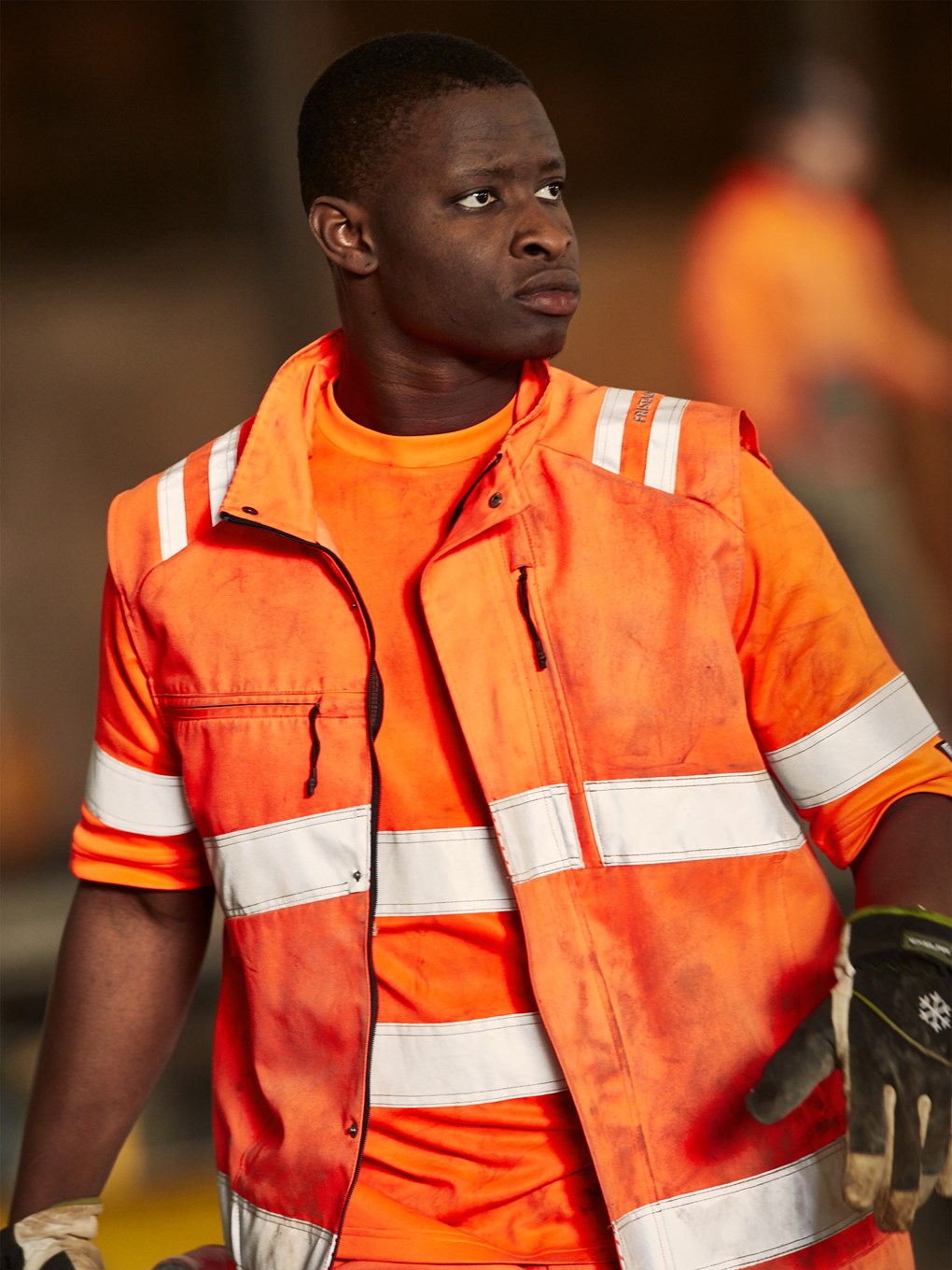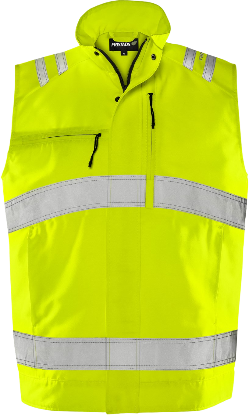 Vastuullinen huomioliivi, joka on tehty luomupuuvillasta ja kierrätetystä polyesteristä. Käytännölliset taskut vetoketjuilla ja napeilla säädettävä helma. EPD (Environmental Product Declaration) ympäristöselosteilla. Konsepti: Trofta PFAS vapaa