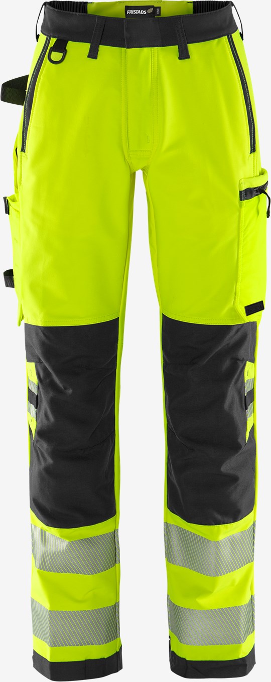 Vastuulliset naisten stretch huomiohousut, joissa on vyötäröllä lisämukavuutta tuovat stretch-paneelit. Housujen täysin joustava stretch-materiaali takaa erinomaisen työskentelymukavuuden. Housut on valmistettu biopohjaisesta ja kierrätetyistä materiaaleista. Vahvikkeet kulutukselle alttiilla alueilla. EPD (Environmental Product Declaration) ympäristöselosteilla. Konsepti: Stiby PFAS vapaa