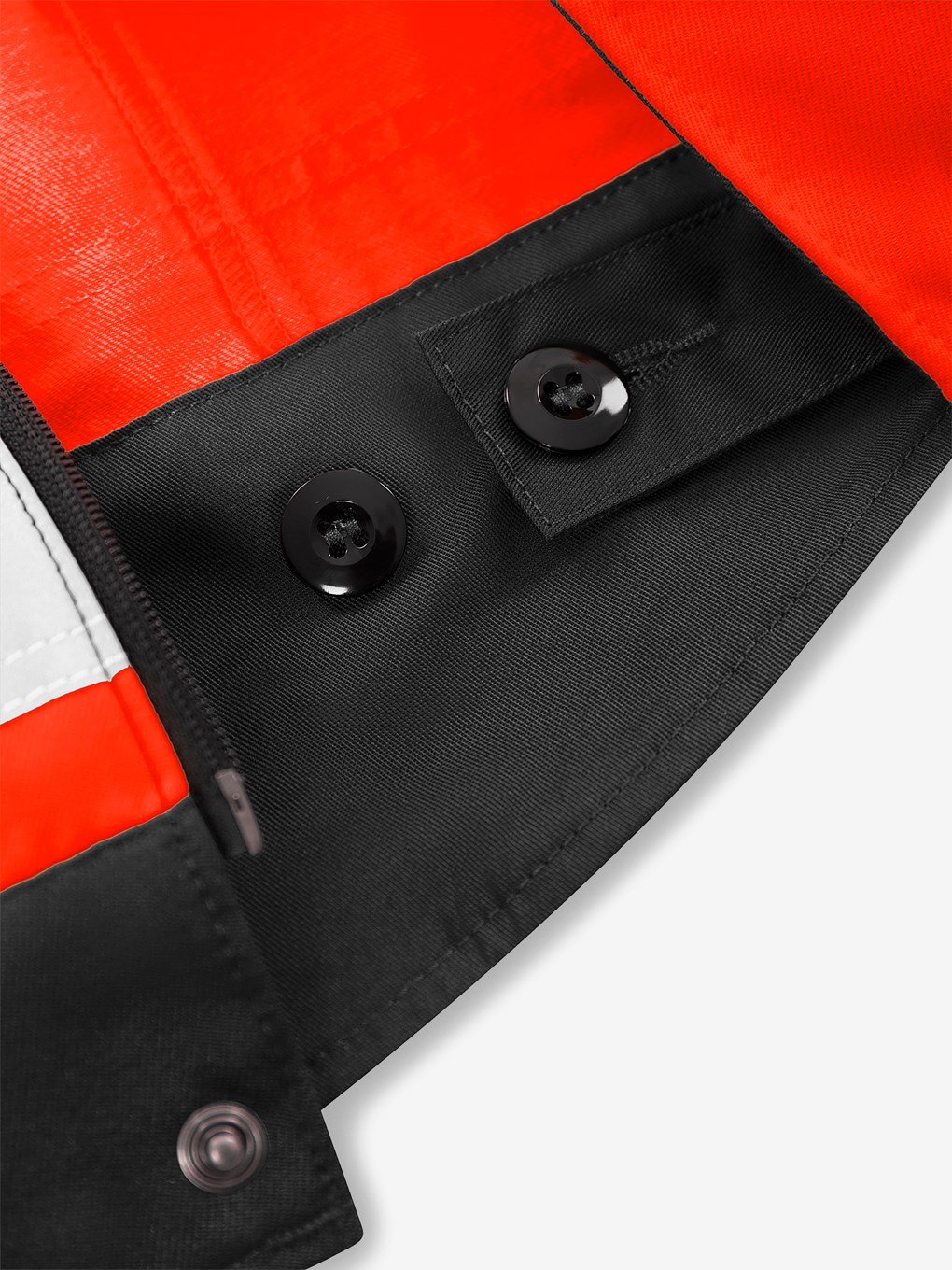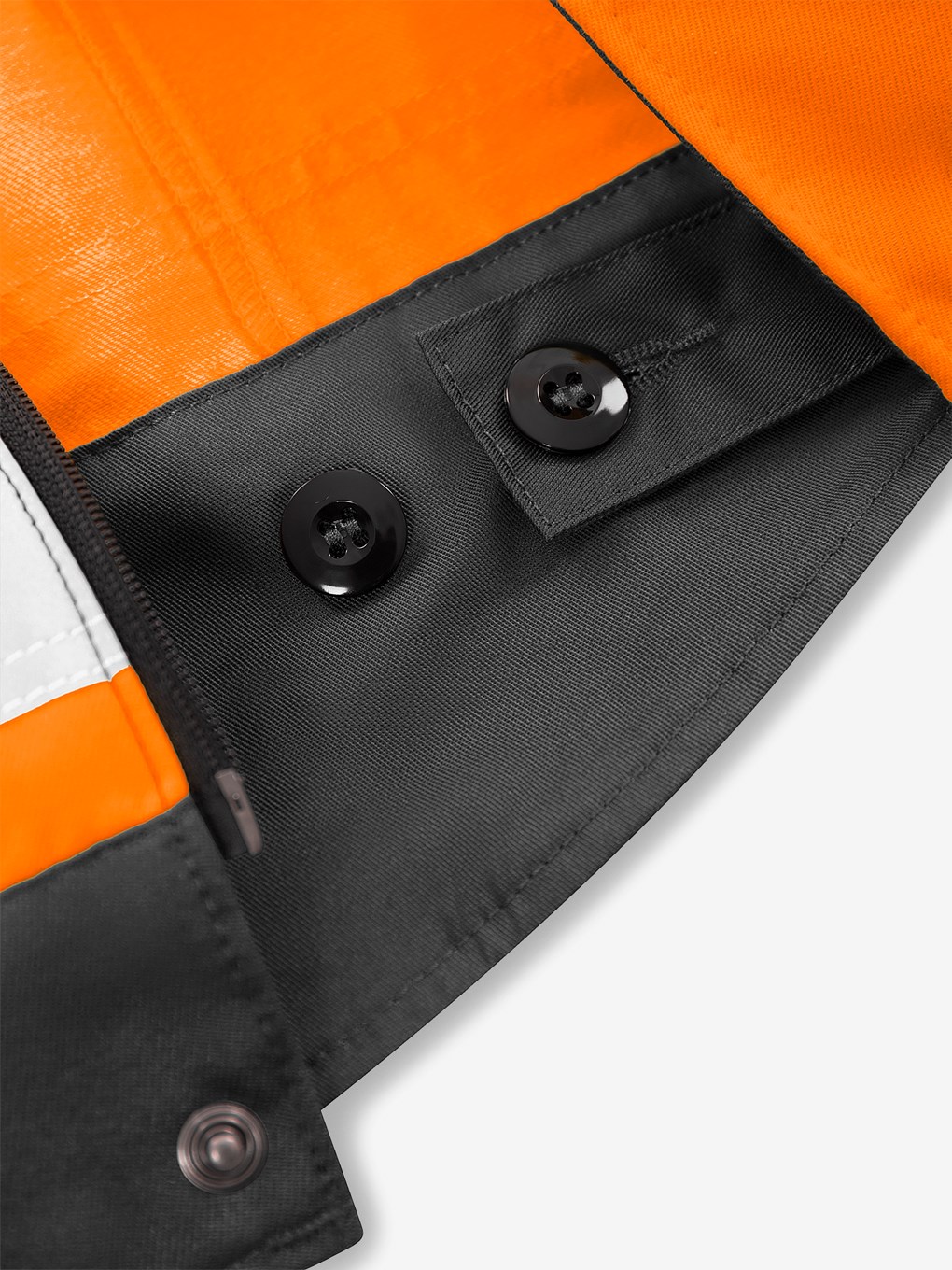 Toiminnallinen ja vastuullinen huomiotakki, joka on kevyt ja tehty luomupuuvillasta sekä kierrätetystä polyesteristä. Käytännölliset vetoketjulliset taskut. EPD (Environmental Product Declaration) ympäristöselosteilla. Konsepti: Trofta PFAS vapaa