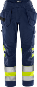 Näkyvät rakentajan housut naisille irrotettavilla riipputaskuilla. Kevyet ja kestävät työhousut luomupuuvillasta ja kierrätetystä polyesteristä. Vyötärön stretch-paneelit tuovat lisää käyttömukavuutta. Konsepti: Trofta PFAS vapaa