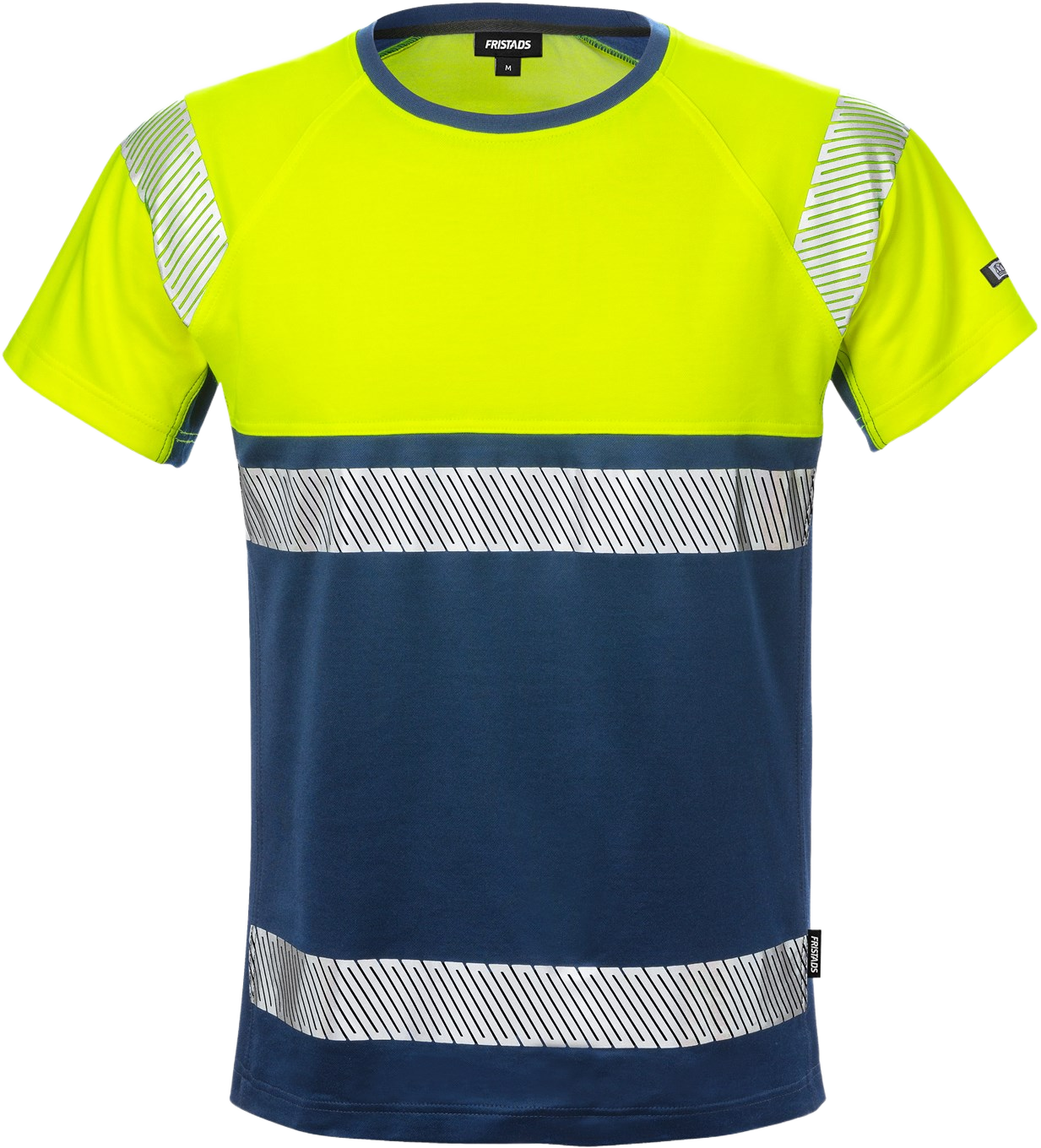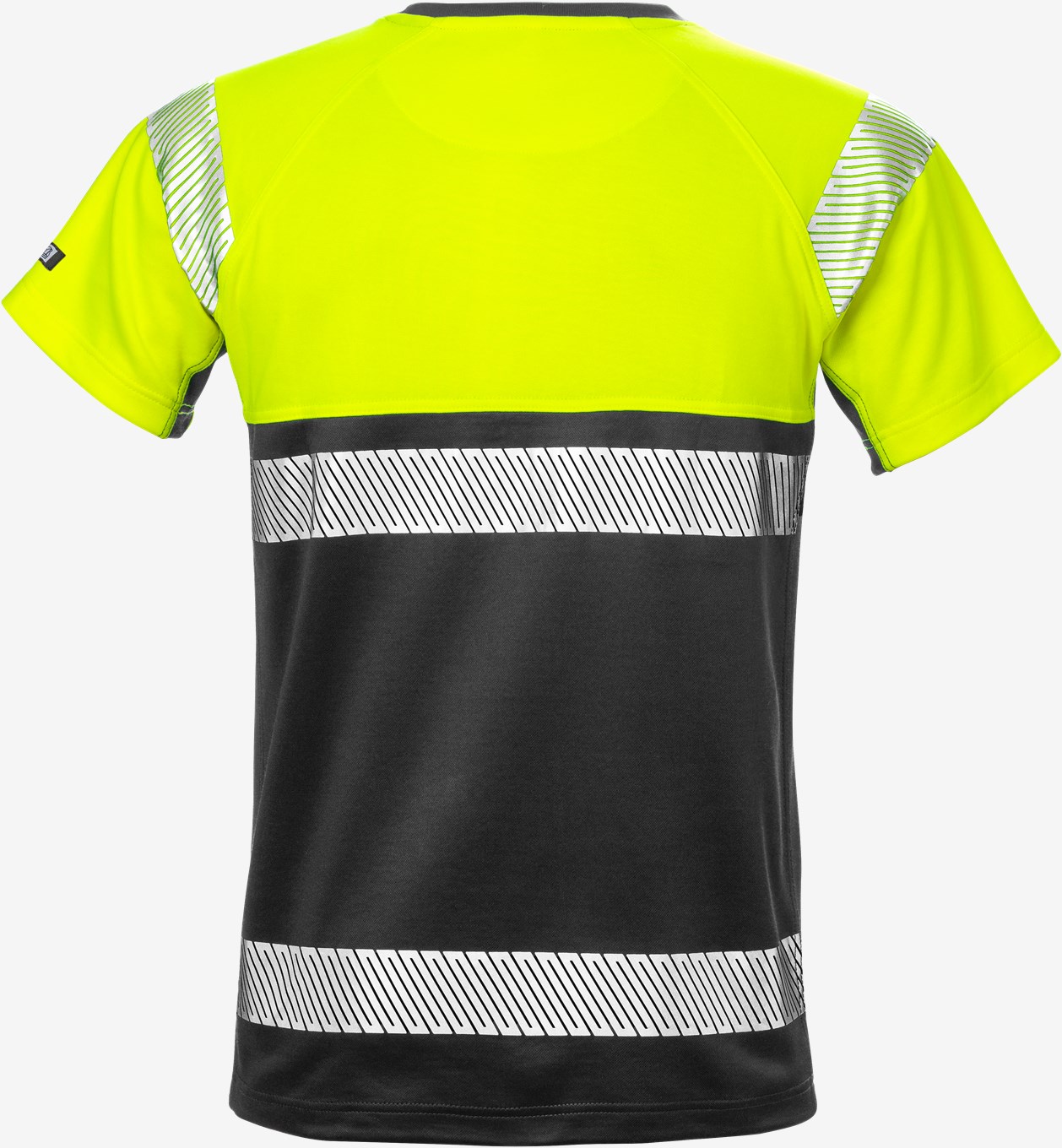 Näkyvä t-paita, jonka joustava heijastinnauha lisää liikkumavapautta. Valmistettu mukavasta ja pehmeästä materiaalista, jonka sisäpuoli puuvillaa. Siirtää kosteutta, kuivuu nopeasti ja suojaa UV-säteiltä. Väri 171 Neonkeltainen/Tummansininen on valmistettu puuvillasta ja kierrätetystä polyesteristä. Värit 196 ja 271 ovat siirtymässä kohti kestävämpää materiaalia. Konsepti: Stiby PFAS vapaa