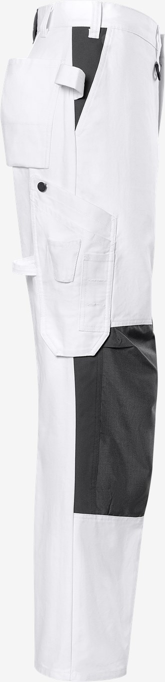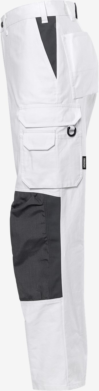 Mukavat riipputaskuilla varustetut työhousut. Kulutusta kestävää 100% puuvillaa, joka imee hyvin esim. maalia ja sopii erinomaisesti maalareille. PFAS vapaa