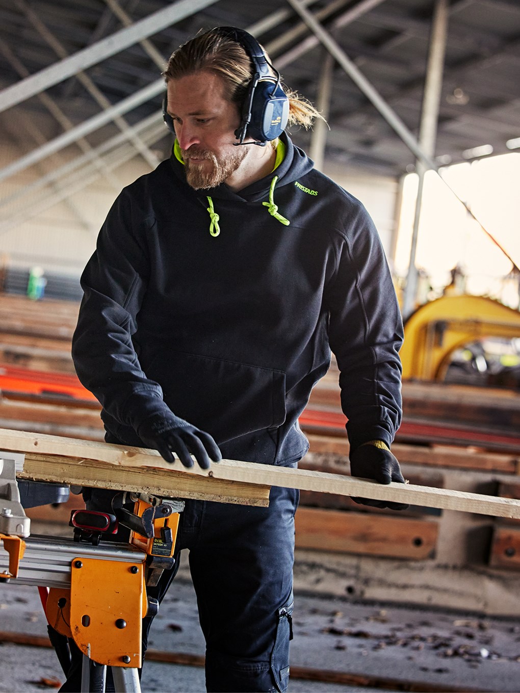 Huppari kierrätetystä polyesterista ja puuvillasta. Klassinen hupullinen collegepaita kestävästä ja mukavasta materiaalista kontrastivärisillä yksityiskohdilla ja harjatulla sisäpinnalla. PFAS vapaa