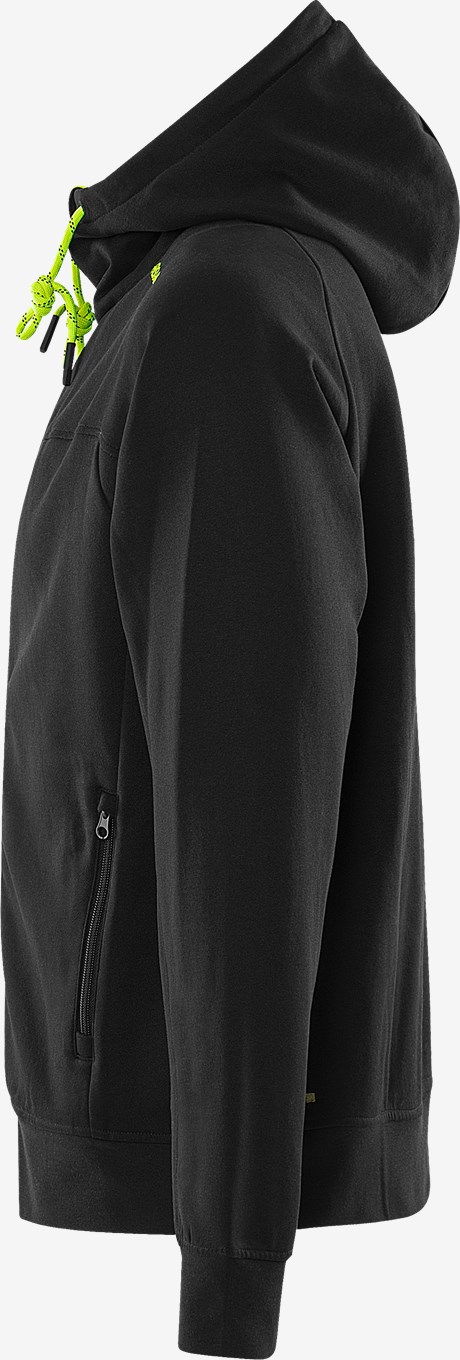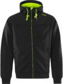 Huppari täyspitkällä vetoketjulla kierrätetystä polyesterista ja puuvillasta. Kestävä ja mukava hupullinen collegetakki, jossa vetoketjutaskut, kontrastiväriset yksityiskohdat ja harjattu sisäpuoli. PFAS vapaa.