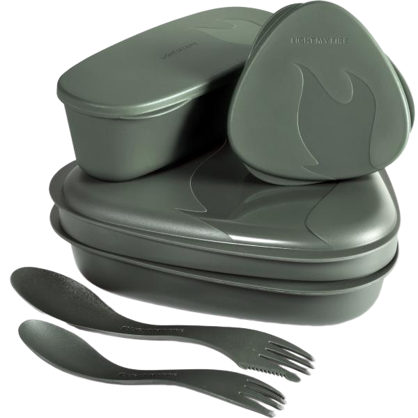 Designed especially for Light My Fire by Scandinavian design Joachim Nordwall, the LunchKit BIO is a handy all-in-one meal kit, perfect for lunch or a snack. The kit includes 1 lid that functions as a plate (500 ml), 1 deep bottomed bowl that also function as a plate (900 ml), 1 SnapBox Original (170 ml) food storage container, a SnapBox Oval (320 ml) storage container, and 1 Light My Fire Spork Original. It also includes a harness to keep the kit all together. Tight-fitting, snap-lock lids keep contents inside the waterproof SnapBoxes instead of all over your bag. This mess kit is especially versatile thanks to the Light My Fire Spork Original that’s a spoon-fork-knife combo. The beauty of this kit is that it all nests inside itself for a compact and transportable meal on the go. Lastly, all components are dishwasher and microwave safe, and are made from Biobased plastics that are 100% BPA-free. This makes the kit versatile to use as a lunchbox for school or work.