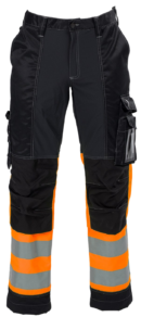 Naisten näkyvät työhousut, joissa erittäin joustavaa stretch-materiaalia edessä ja takana sekä erittäin mukava joustava ja säädettävä vyötärörakenne takana. Naisten huomiohousuissa on päämateriaalina hylkiväpintainen polyesteri-puuvilla-sekoitemateriaali ja ulkopuolella alta täytettävät CORDURA®-vahvisteiset polvisuojataskut.