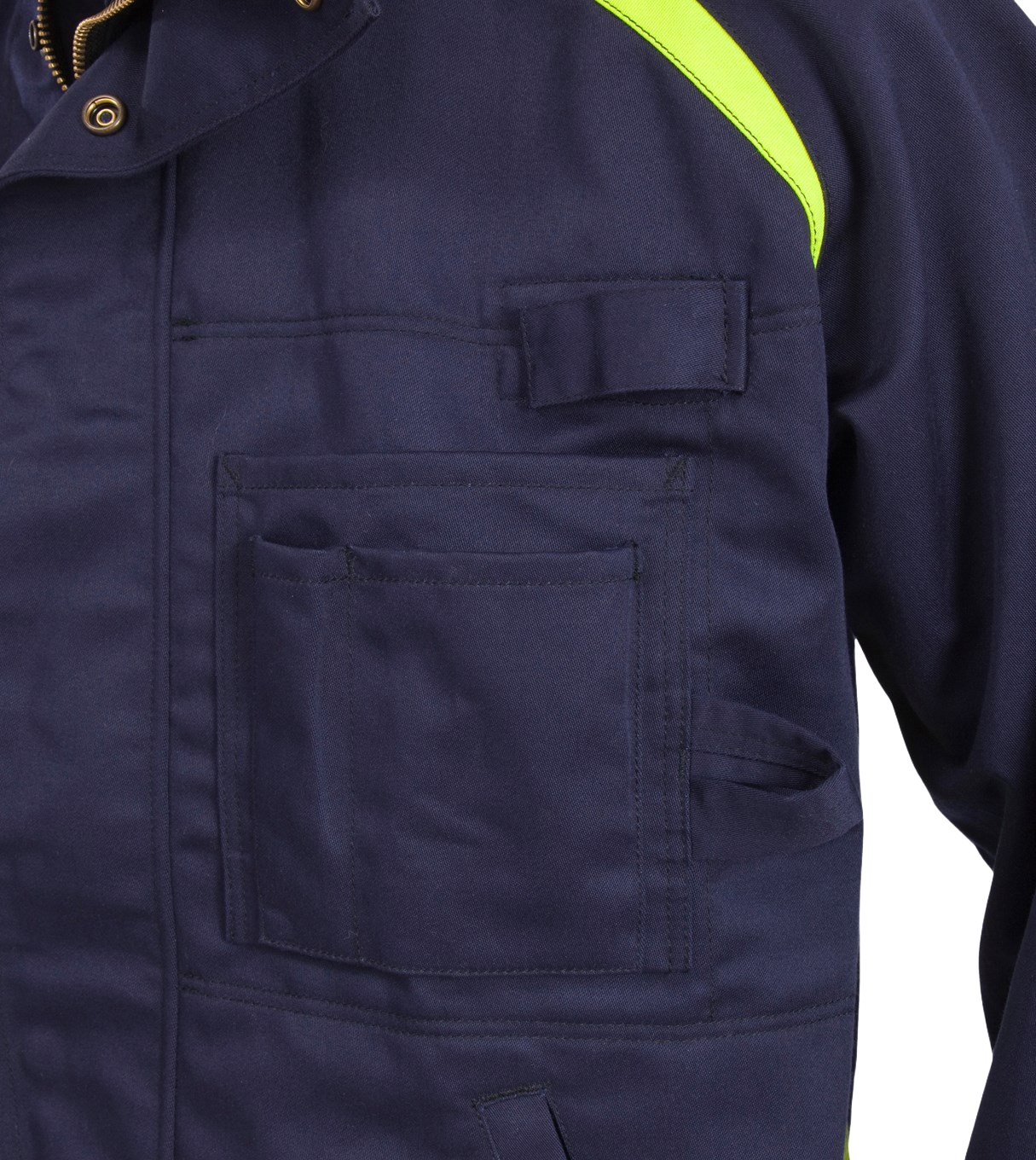 Palosuojattu takki vahvasta ja kestävästä materiaalista, jossa korostuu puuvillan mukavuus. Sertifioitu 50 teollisen pesukerran jälkeen. Siirtymässä PFAS-vapaaksi