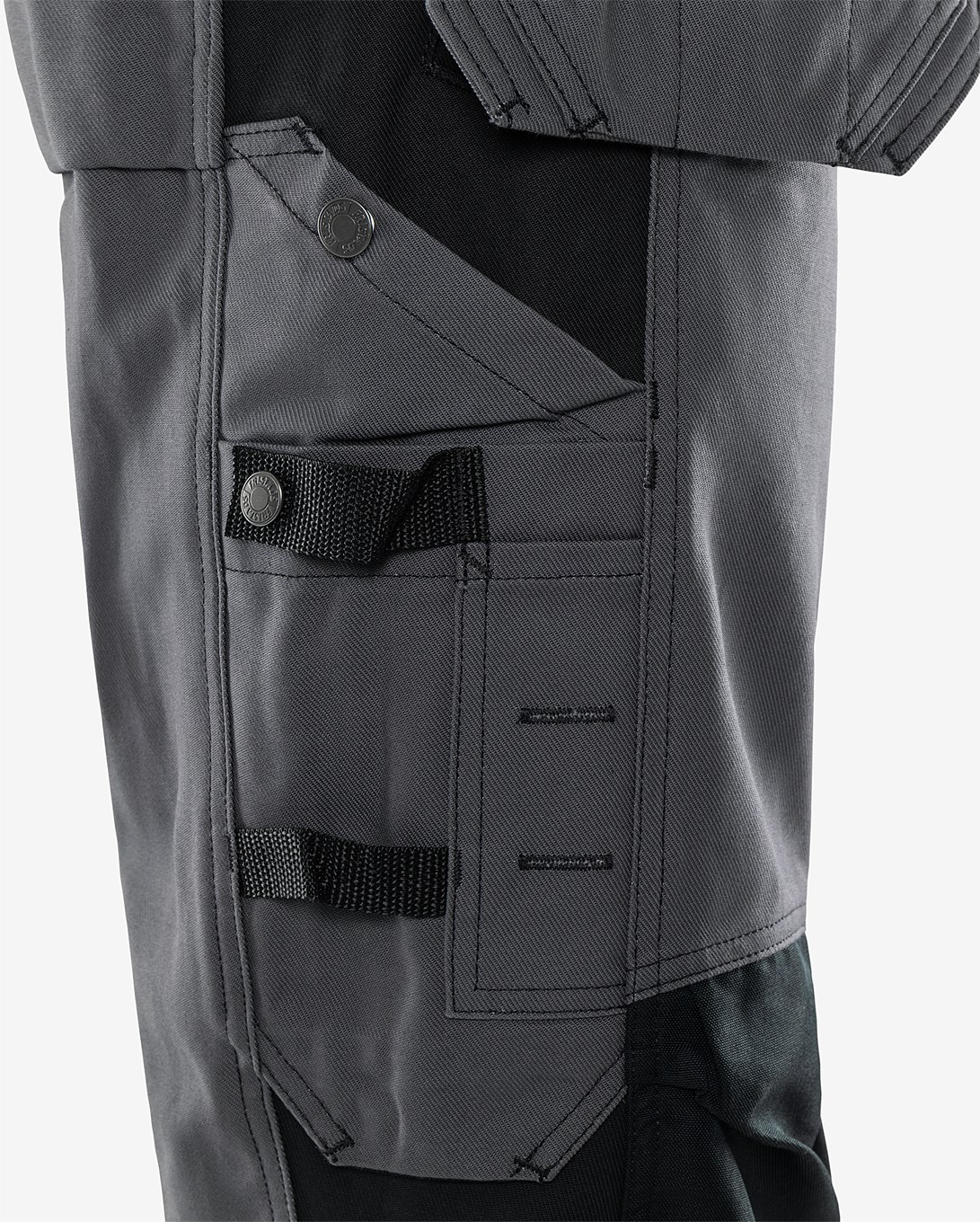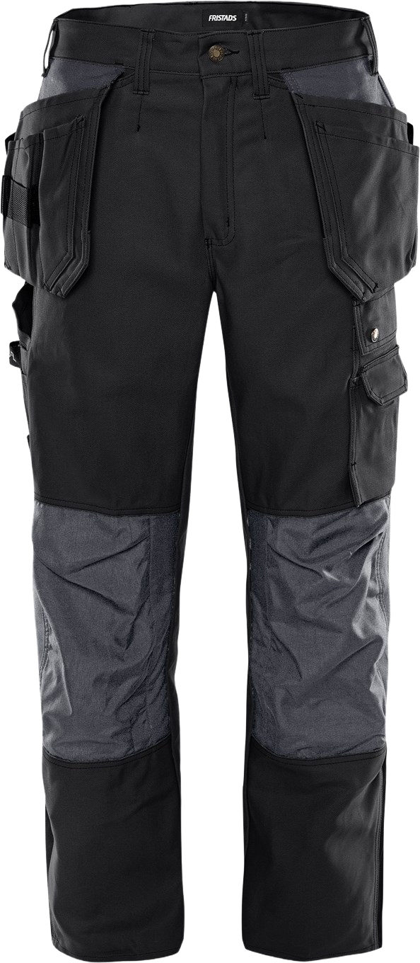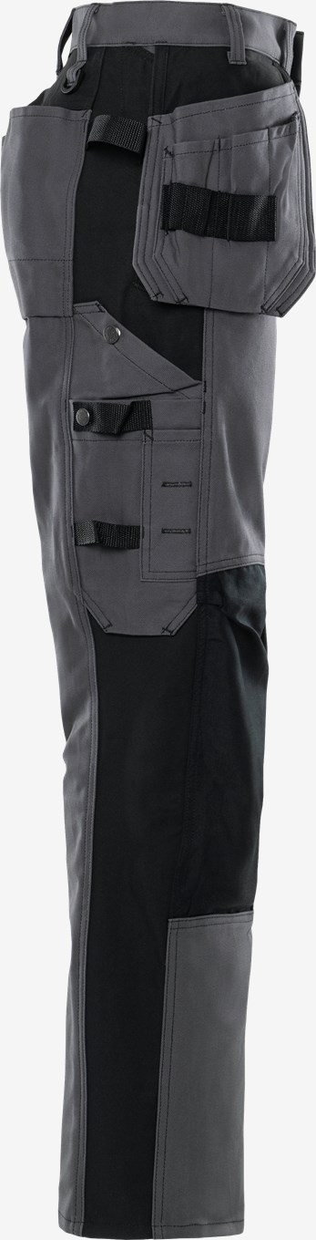 Hyvin varustellut kaksiväriset klassiset työhousut kulutusta kestävästä 100% puuvillasta. Kontrastiväri lahkeen sivuilla. Konsepti: Classics PFAS vapaa