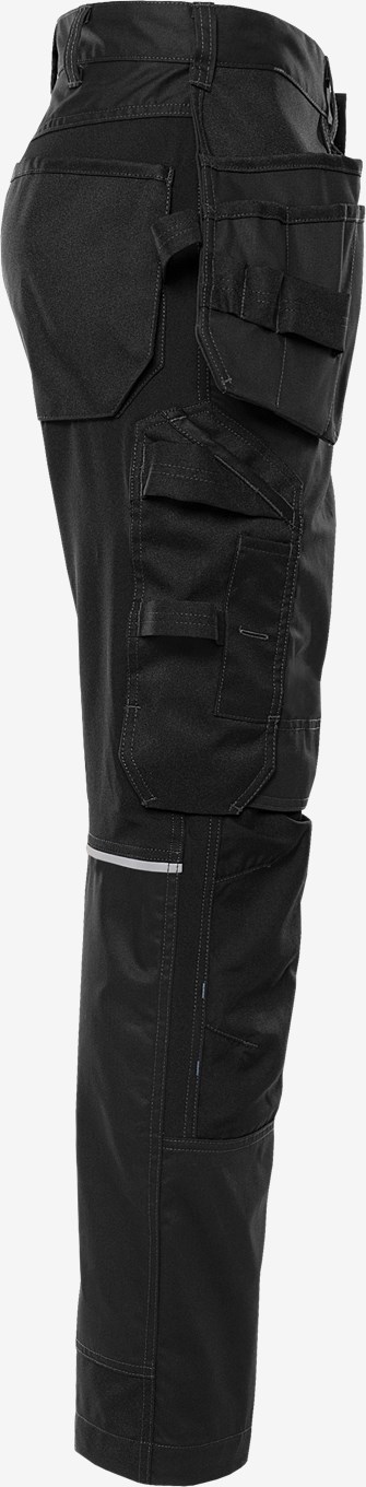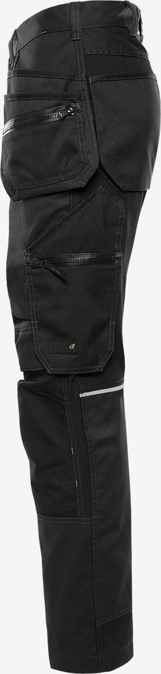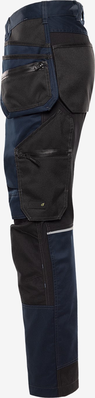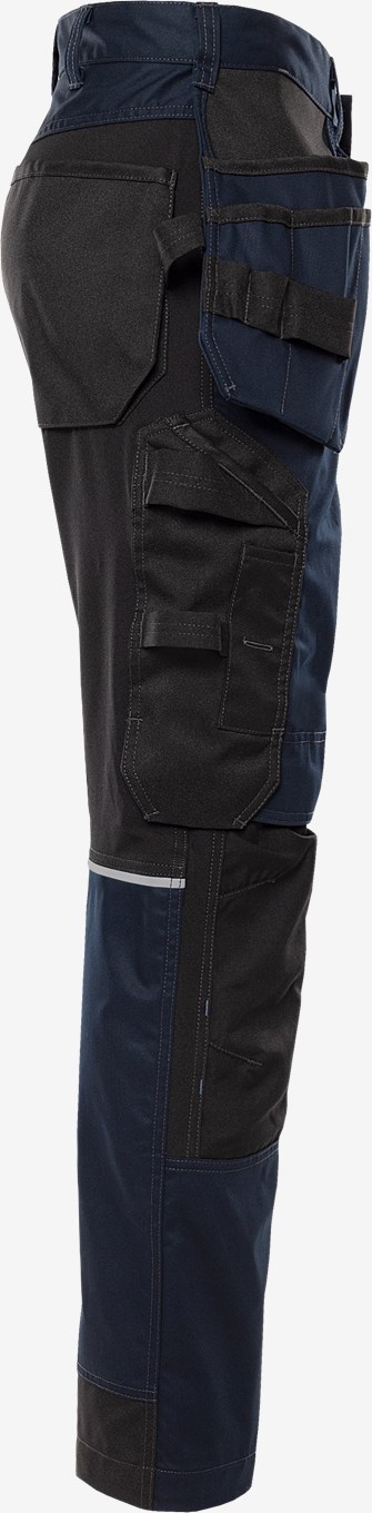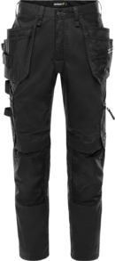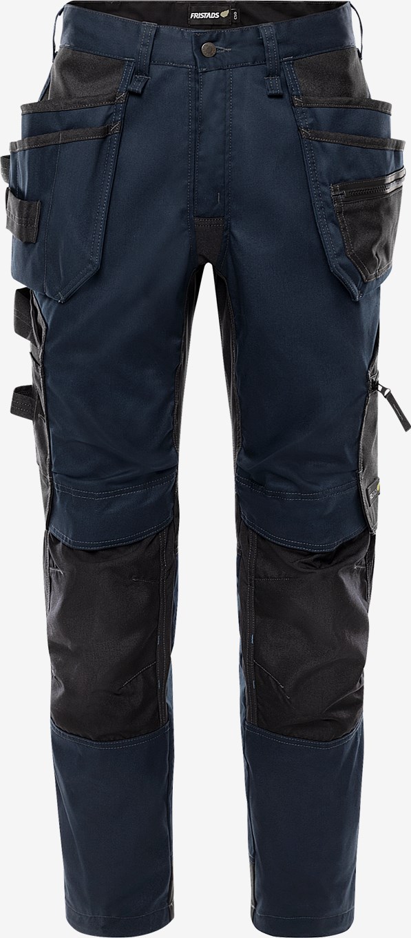 Rakentajan housut neljään suuntaan joustavilla stretch paneeleilla. Valmistettu kevyestä ja kestävästä materiaalista, jossa mekaaninen jousto, osa materiaalista kierrätettyä polyesteria. Mukavat työhousut, joissa kaikki tarvittavat toiminnot ja ominaisuudet. Konsepti: Alnaryd PFAS vapaa