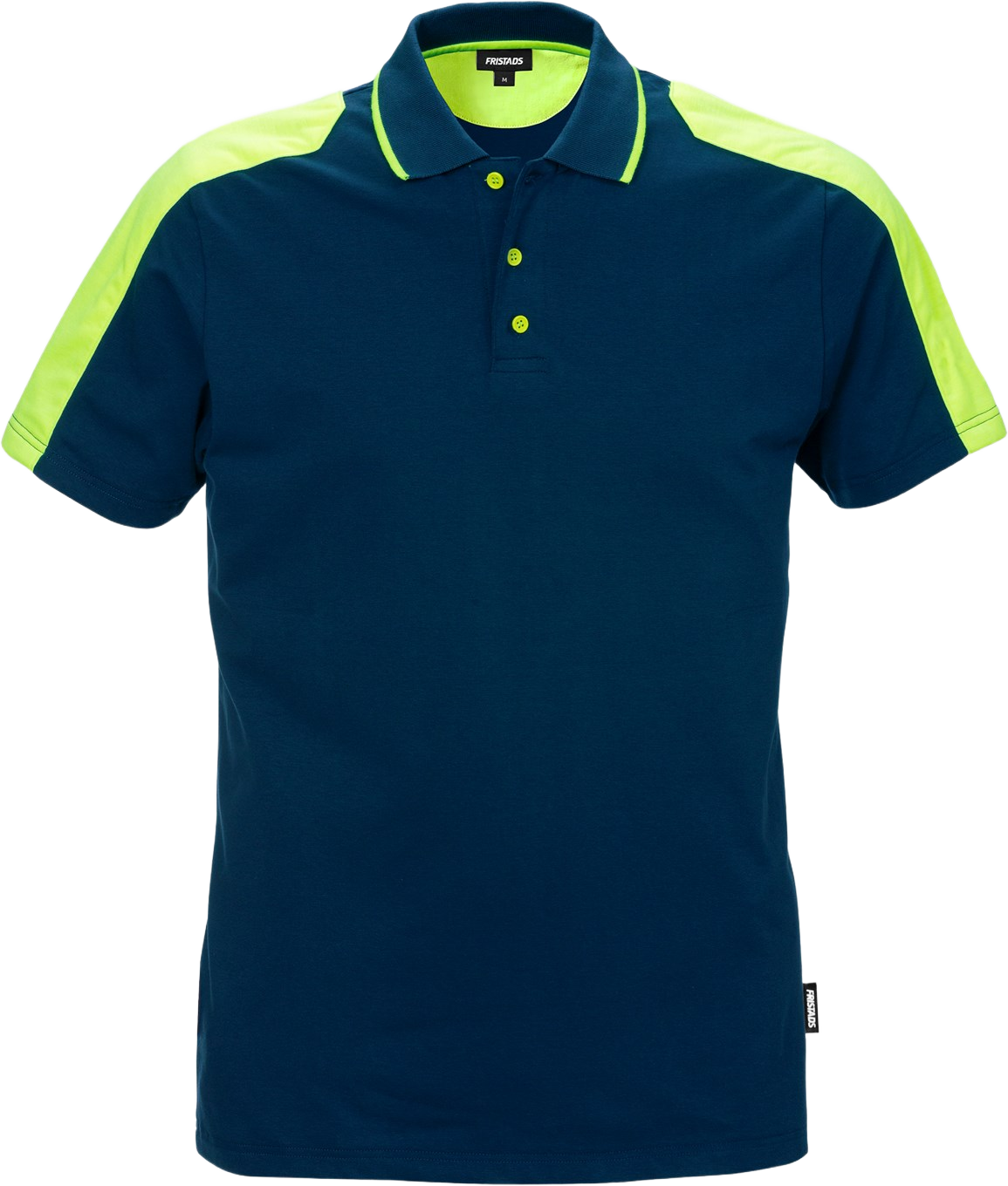 Mukava puuvillainen stretch pikeepaita neonkeltaisilla paneeleilla. PFAS vapaa