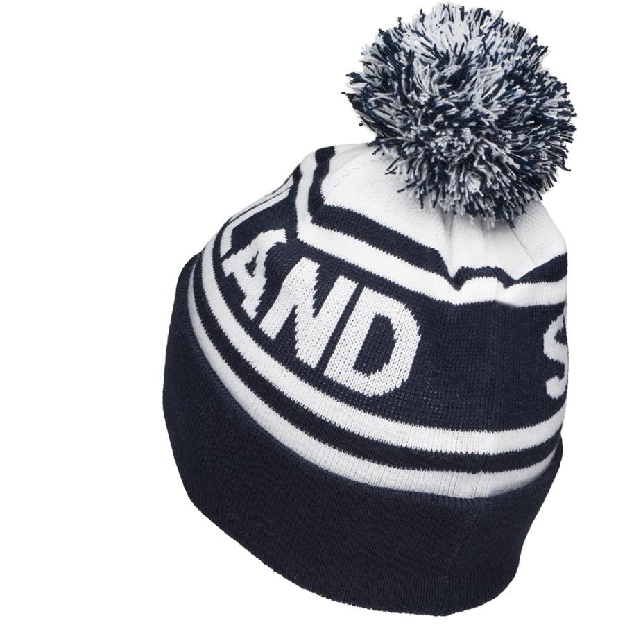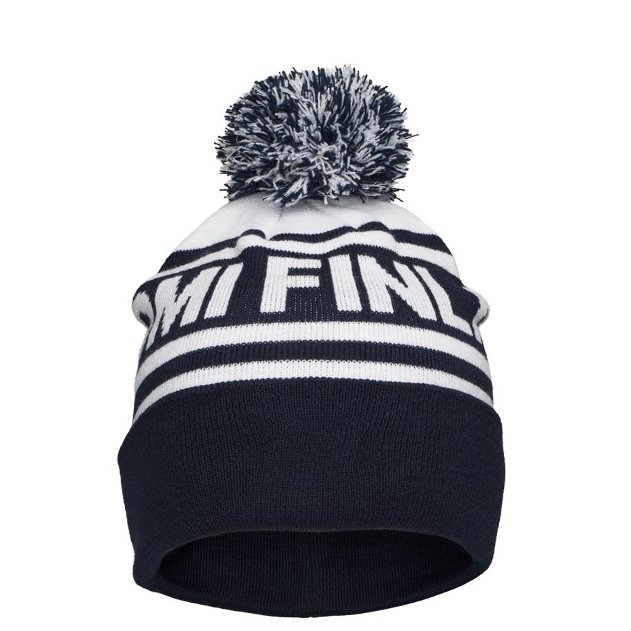 Klassinen tupsupipo jacquard neulotuilla suomiteksteillä. Täydellinen valinta esimerkiksi kisakatsomoon.