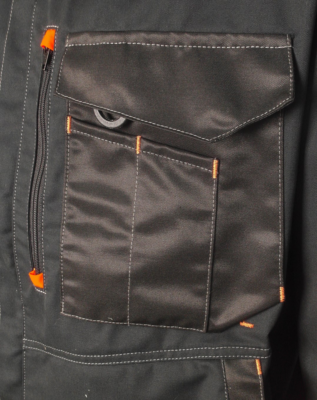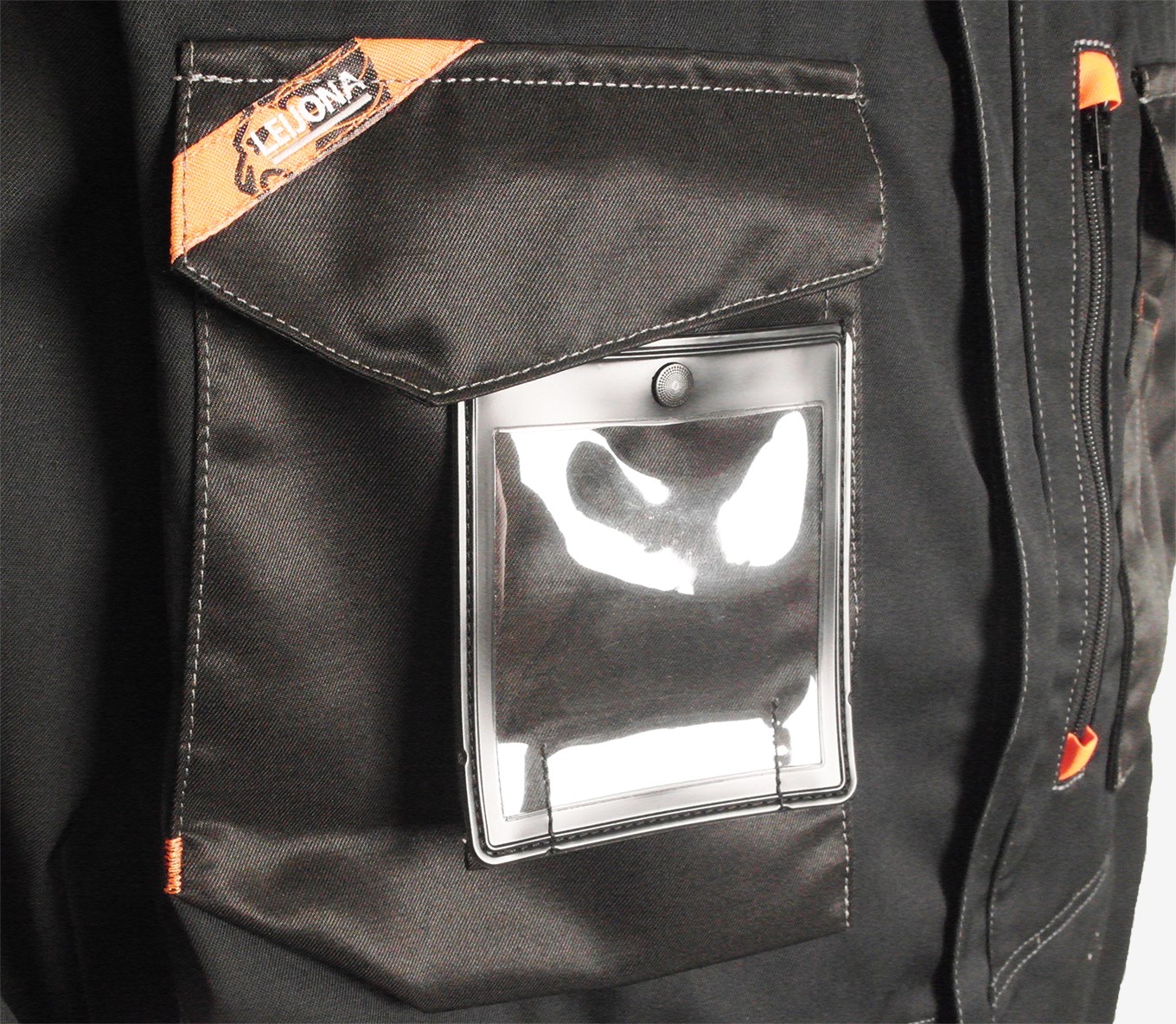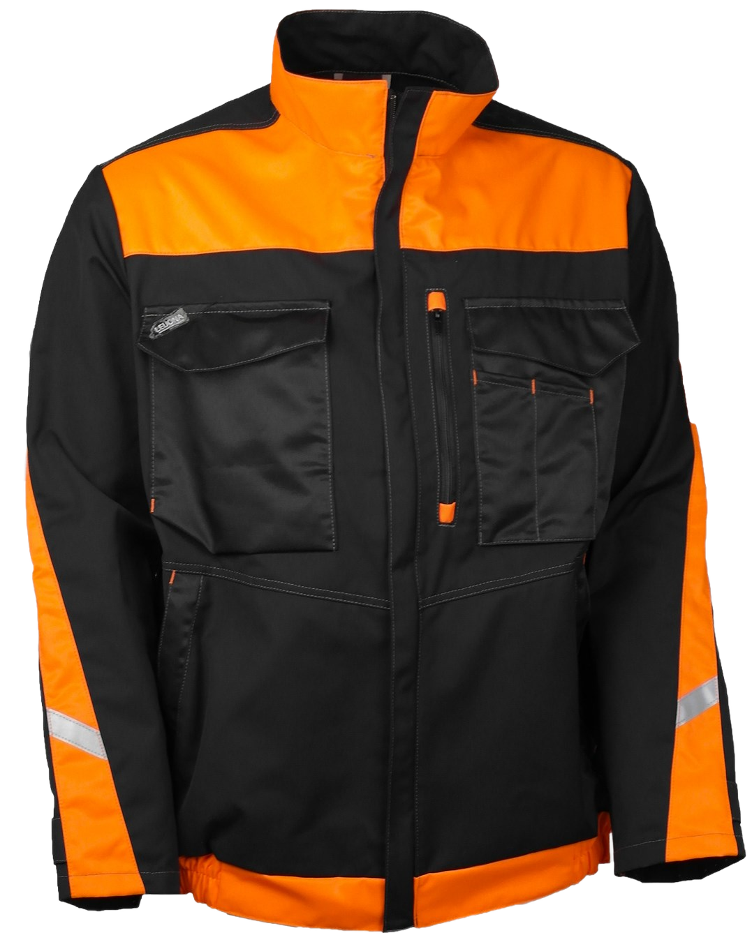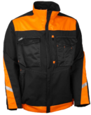 Työtakki mattapintaisesta hengittävästä materiaalista monipuolisilla taskuilla. Takissa on fluoresoivat oranssit leikkaukset tuomassa lisää näkyvyyttä ja lisäksi hieman heijastetta. Monipuoliset rintataskut sekä vetoketjutasku että paikkataskut, joissa oma paikka kynille. Korttitasku on riippuvamallinen, joten sen saa tarvittaessa esille tai piiloon rintataskuun. Alataskuissa vetoketjut. Takissa on hartioilla hyvin liikkumatilaa antavat laskokset joustavasta materiaalista. Rintataskuissa on piilopainonapit, jotta pinnassa ei olisi naarmuuttavia yksityiskohtia.