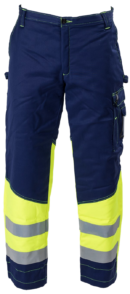 Palosuojatut huomiotalvihousut, talvikäyttöön, jossa tarvitaan palosuojauksen lisäksi hyvää näkyvyyttä. Talvihousuissa on reisitasku ja vuorissa polvitaskut.