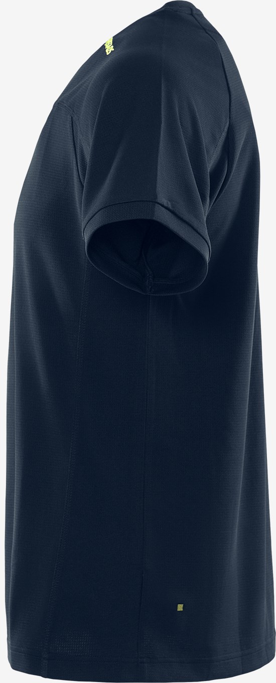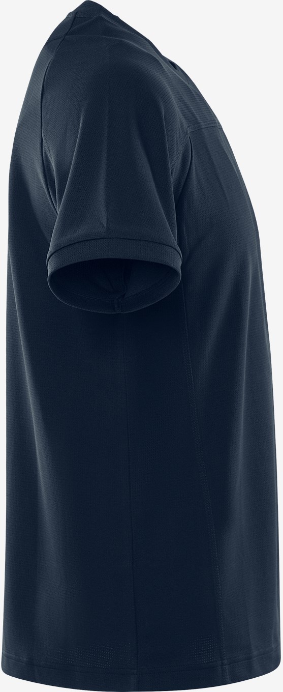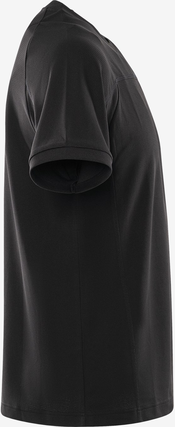 Kierrätetystä materiaalista valmistettu t-paita, jonka toiminnallinen neulos parantaa hengittävyyttä. Pehmeä tekninen t-paita mukavasta materiaalista, joka kuljettaa kosteutta ja kuivuu nopeasti. PFAS vapaa