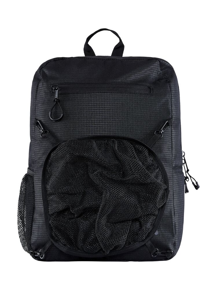 Monikäyttöinen reppu, jossa ulkopuoli erittäin kestävää polyesteriä ja sisäpuoli vahvistettua polyuretaania. Mukana pallotasku, paikka kannettavalla tietokoneelle, pullotasku sekä käytännöllinen pieni tasku sivulla. Tilavuus 14L. Mitat: 42x31x13cm