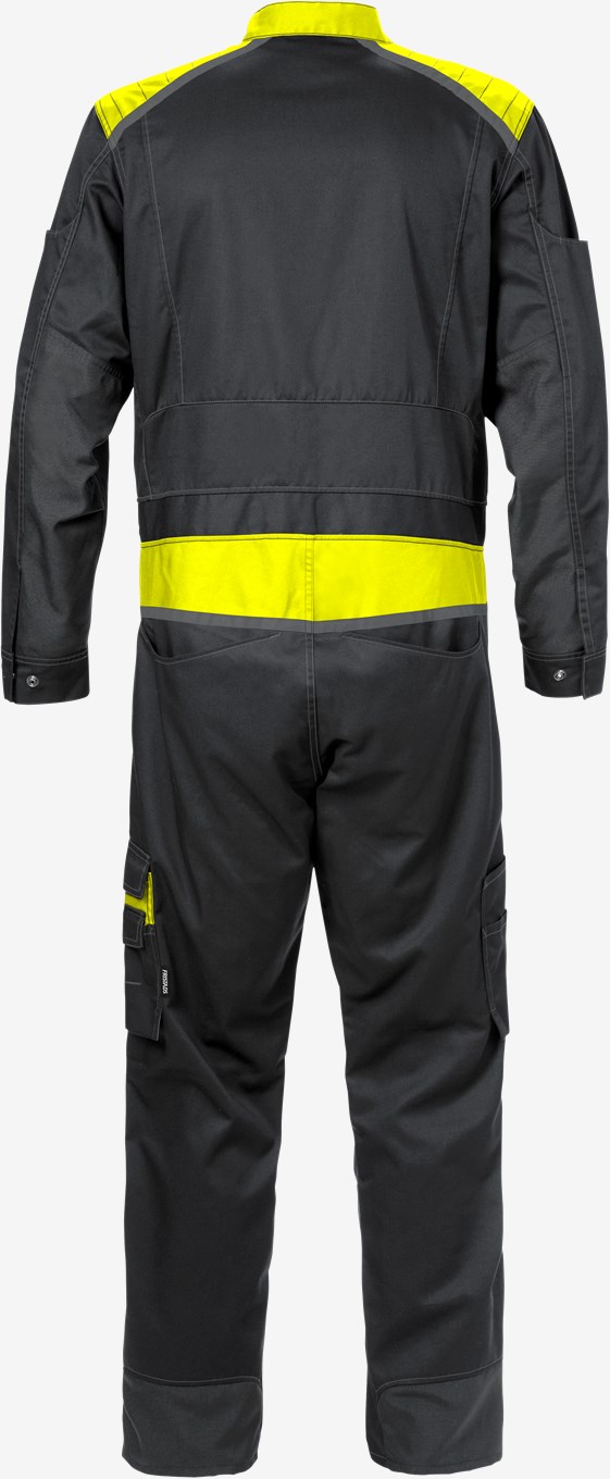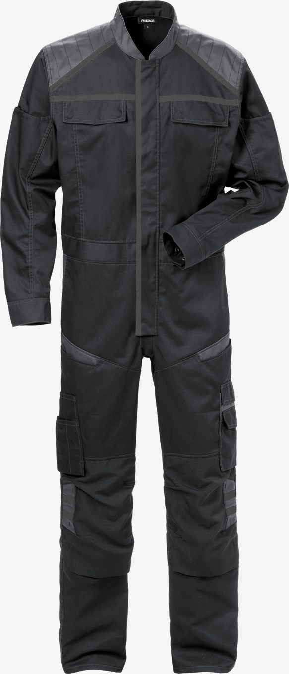 Nykyaikainen umpisuoja teollisuuteen tai huolto- ja palvelualoille. Valmistettu kevyestä, kestävästä ja joustavasta materiaalista, joka tarjoaa hyvän liikkumavapauden. Polvitaskut ja heijastavia yksityiskohtia näkyvyyden parantamiseksi. Hyväksytty teolliseen pesuun. Konsepti: Skarup PFAS vapaa
